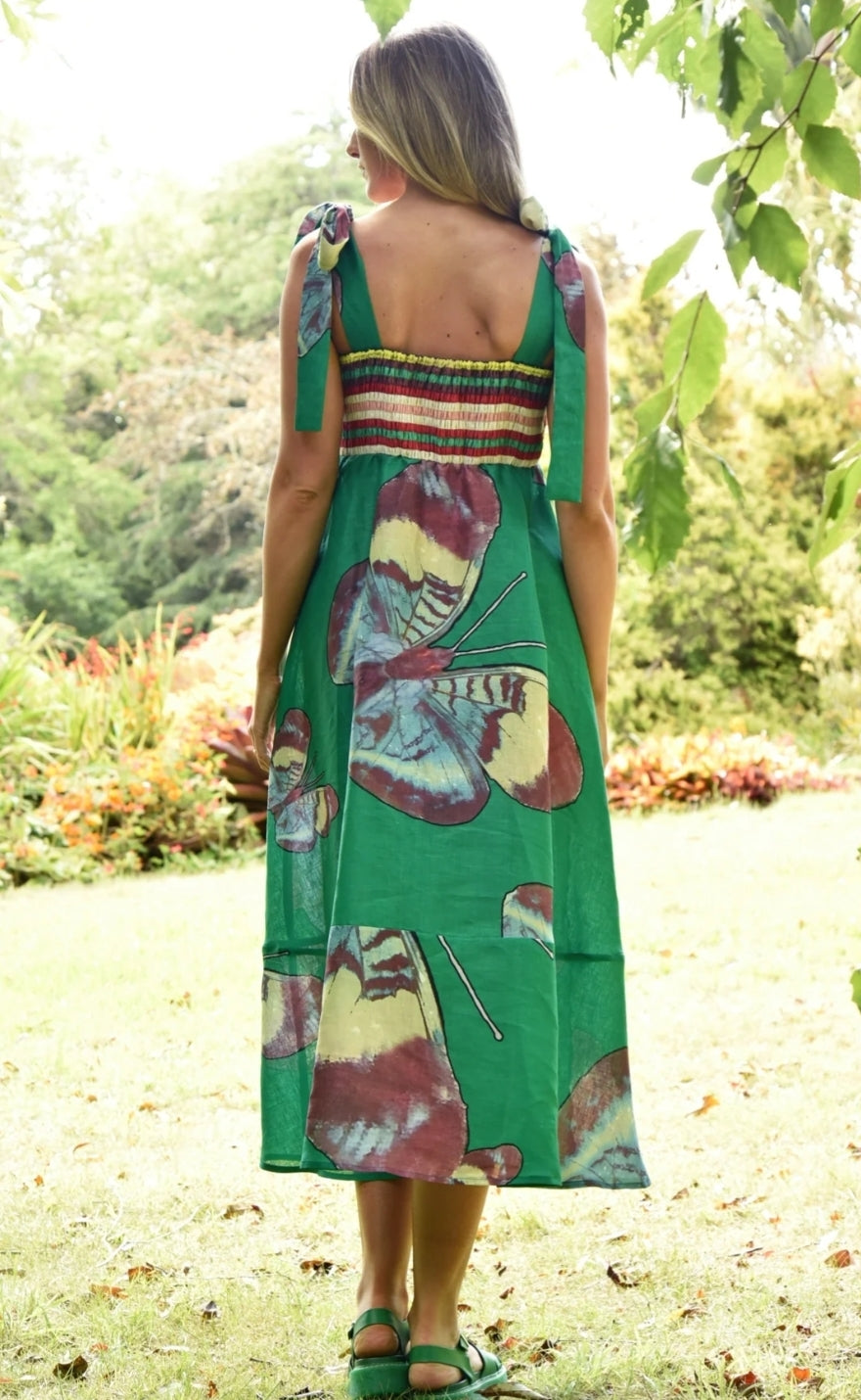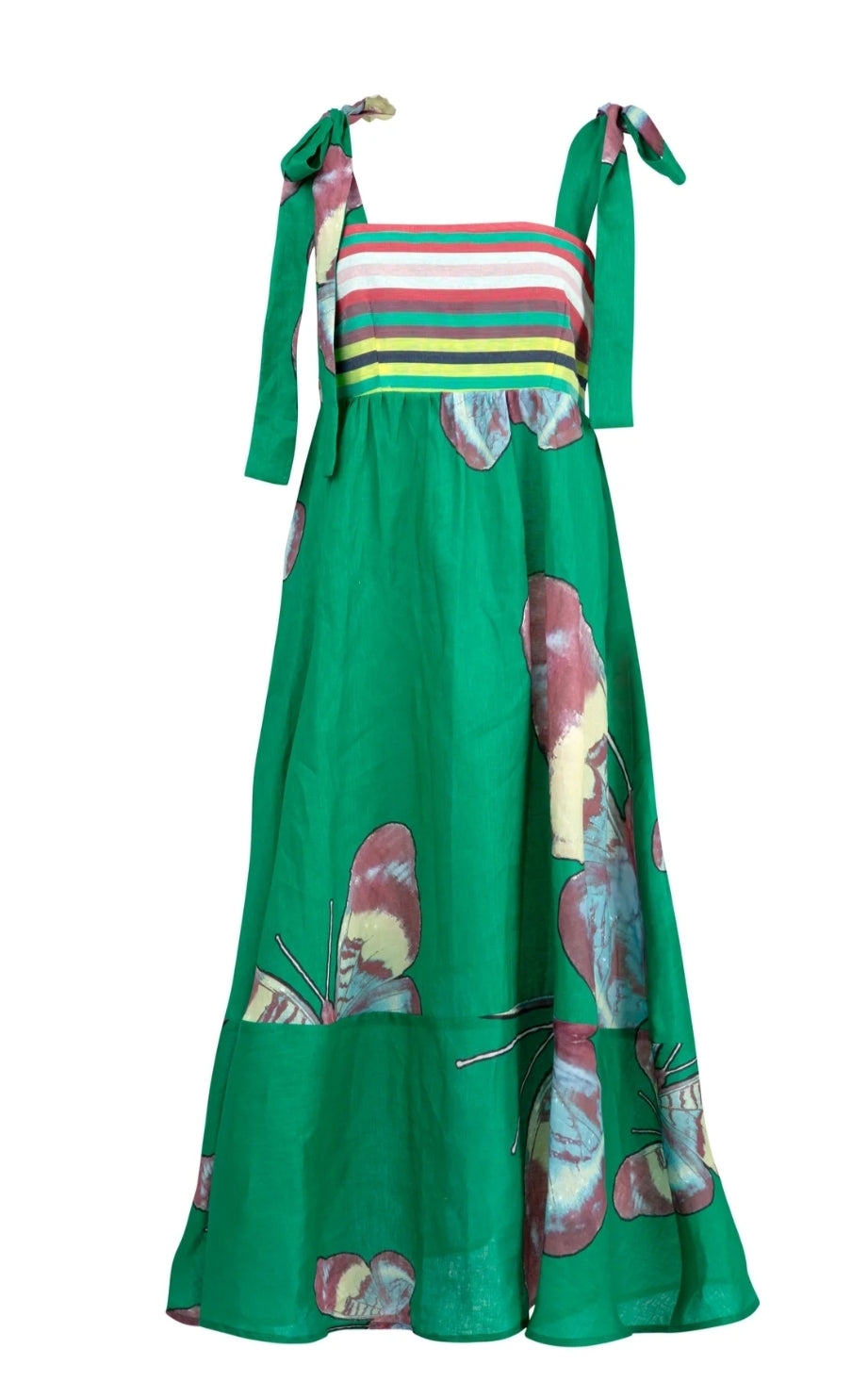 Playful and charming, the ‘Strong Ties’ dress is a piece made for frolicking in the sunshine. Crafted in the whimsical ‘Wings of Desire’ butterfly printed linen blend, this dress sports a fitted bodice supported by a shirred back and fixed bow straps. Thanks to its lightweight fabrication this dress is the perfect spring must-have.