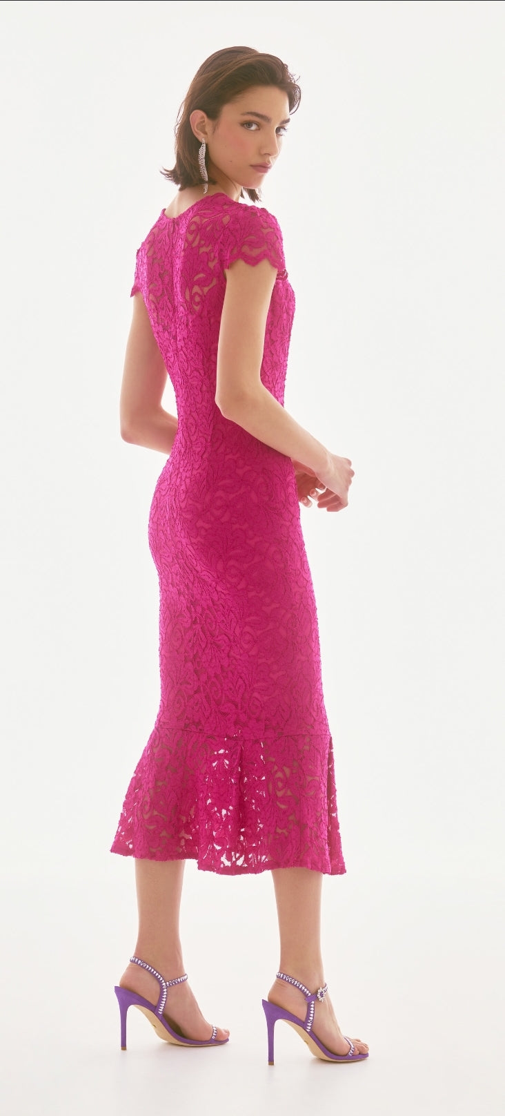This stunning stretch lace dress will bring the romance back and leave a lasting impression. Crafted from an intricate corded lace, this piece features short gathered cap sleeves, and a flirty flounce at the bottom hem. Refined details like a back V-neck with a scalloped edge brings an element of charm, while the soft lining adds an alluring touch. Part of the Signature collection.