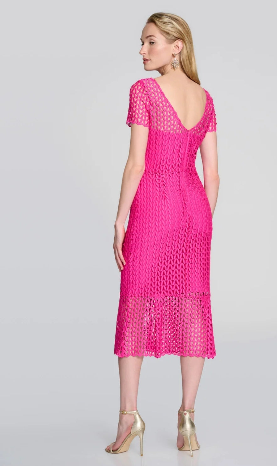 Shop the Joseph Ribkoff Collection Now and Elevate Your Style with the Phoebe Pink Guipure Lace Flounce Dress!