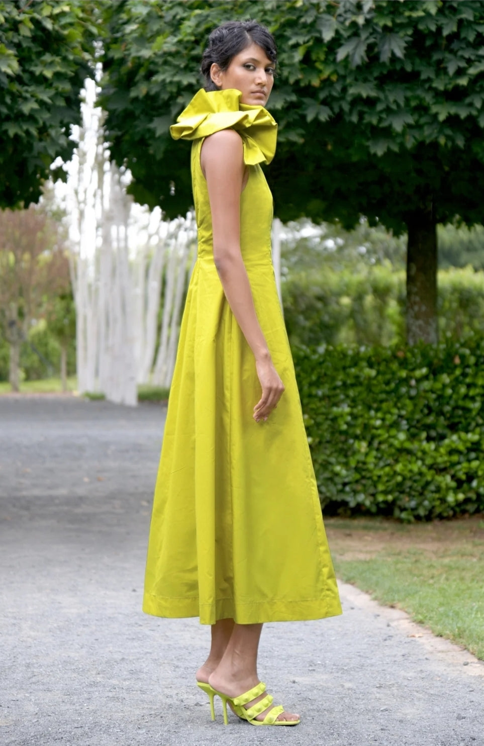 clean silhouette and bold hue come together to present the event favourite ‘On the Bright Side’ dress. Boasting a subtle sheen granted by the ‘Lustre Love’ viscose blend fabrication, this dress is an occasion wear hero. With a flattering fit through the bodice that flares to an A-line skirt this dress is finished with a detachable, layered shoulder detail for styling versatility.